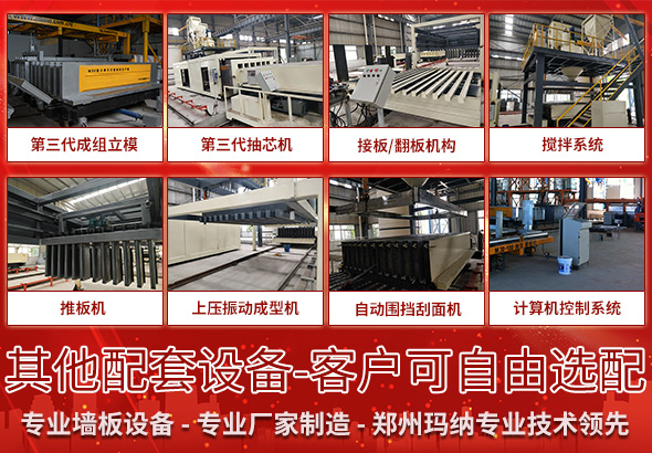 M30石膏墻板生產線主要由①三代不漏漿成組立模②液壓集體分離抽芯機③自動配料攪拌系統④自動布料機⑤推板、清模、涂油機⑥翻板、打包機⑦計算機控制系統⑧上壓成型機⑨自動圍擋刮面機等重要部分。