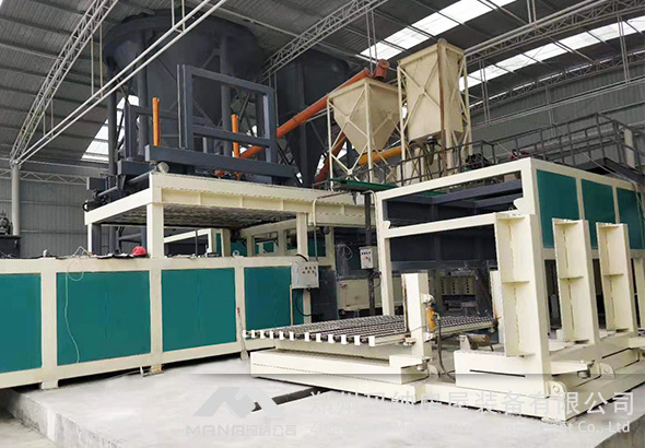石膏輕質隔墻板生產線主要設備包括:原料供應系統、澆注系統、墻板成型機、抽管系統、出板系統、墻板翻轉機、擺渡系統、PLC自動可視化控制系統。