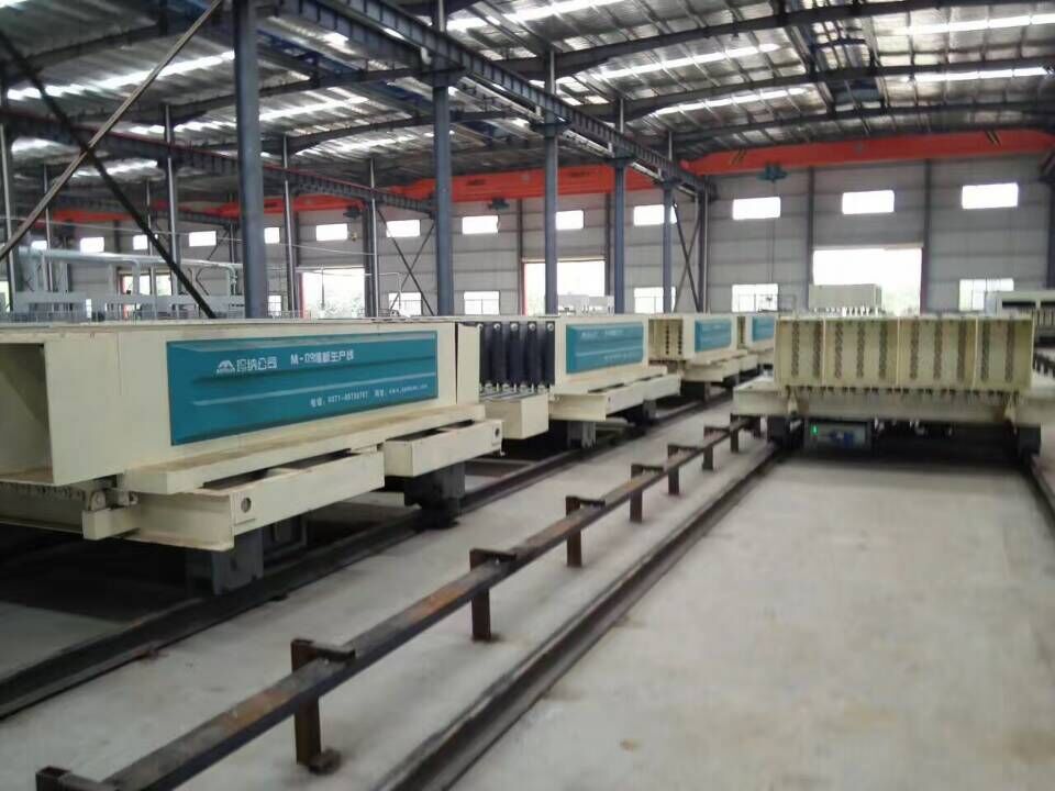 3、 每次能生產12塊墻板的成組立模25臺,立模為液壓開合并可直線行走。