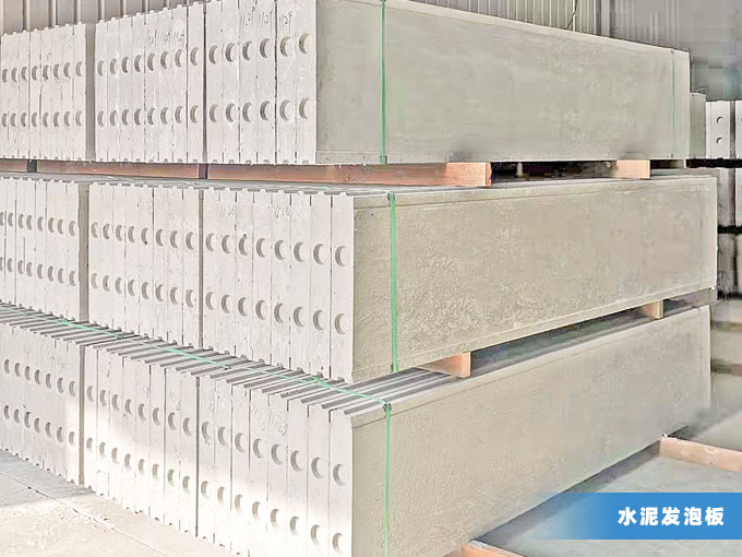 水泥發(fā)泡板主要由粉煤灰(或硅砂)、水泥、石灰和水等拌和得到的混凝土,經(jīng)過內(nèi)置鋼筋網(wǎng)籠(鋼絲網(wǎng)片),經(jīng)過高壓蒸汽養(yǎng)護(hù)而成的一種輕質(zhì)多孔混凝土板材。板一般寬為600mm,板厚分別為100mm和200mm,最長(zhǎng)可達(dá)3000mm。