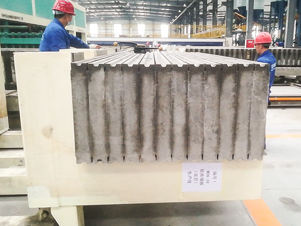 成組立模成型主機——特殊密封處理技術不漏漿不粘模,大剛度設計,使得成型板材高精度,它的配置數量直接決定產能大小;