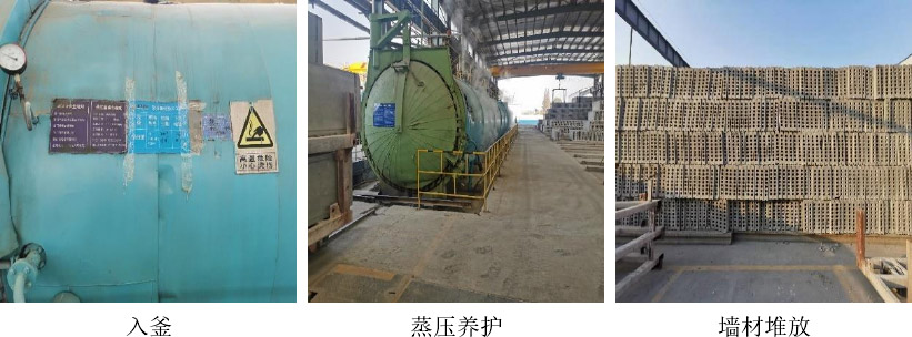 之后進行抽芯處理,經過表面質量檢測和修復后,開始進行蒸壓養護處理,蒸壓養護過程分為升壓、恒壓、降壓三個過程:升壓階段(15min 0.10MPa;30min 0.25MPa;45min 0.35MPa;1h 0.50MPa)、恒壓階段(2h、0.5±0.05MPa)、降壓階段(15min 0.40MPa;30min 0.30MPa;45min 0.20MPa;1h 0.15MPa;1h15min 0.10MPa;1h30min 0MPa)、降溫冷卻 30min。