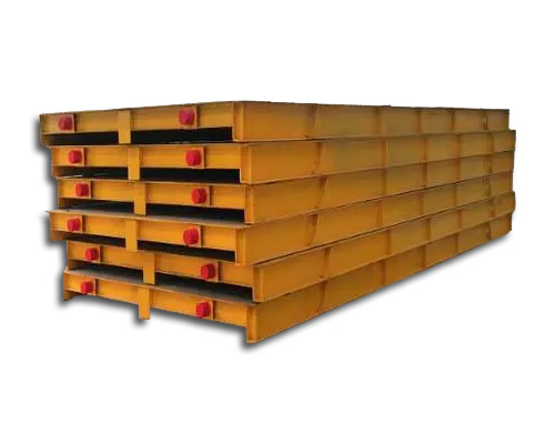 固定模臺工藝的設計主要是根據生產規模,在車間里布置一定數量的固定模臺,組模、放置鋼筋與預埋件、澆筑振搗混凝土、養護構件和拆模都在固定模臺上進行。固定模臺生產工藝,模具是固定不動的,作業人員和鋼筋、混凝土等材料在各個模臺間“流動”。綁扎或焊接好的鋼筋用起重機送到各個固定模臺處、混凝土用送料吊斗送到模臺處,養護蒸汽管道也通到各個模臺下。裝配式構件就地養護,構件脫模后再用起重機送到存放區。