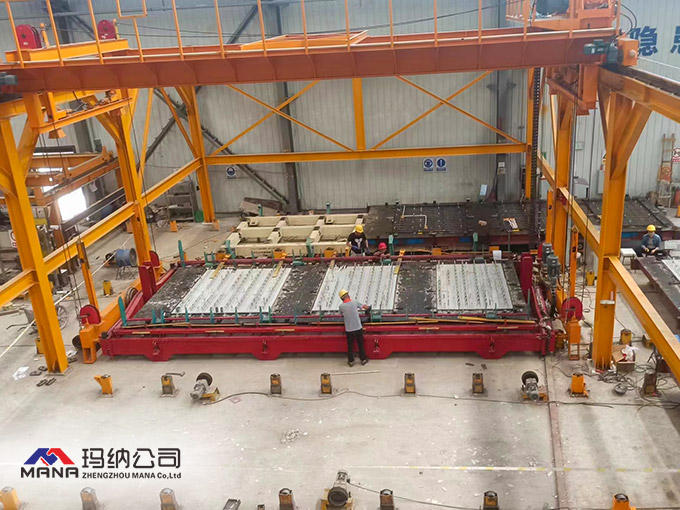 (1)平面布局合理。魚雷罐速度快,攪拌站位置合理,實(shí)現(xiàn)鋼筋加工、模具安置、布料澆筑振搗、養(yǎng)護(hù)區(qū)域合理安排。(2)合理利用空間布局:二層平臺(tái)或立體流水線工藝。(3)鋼筋加工和澆筑成型整合一體化。