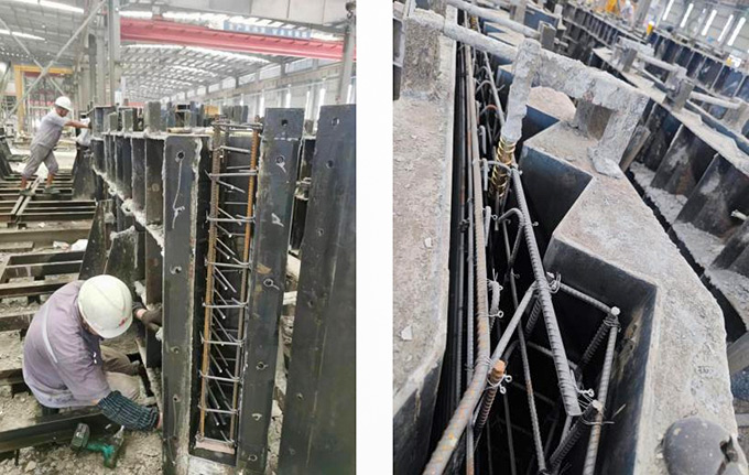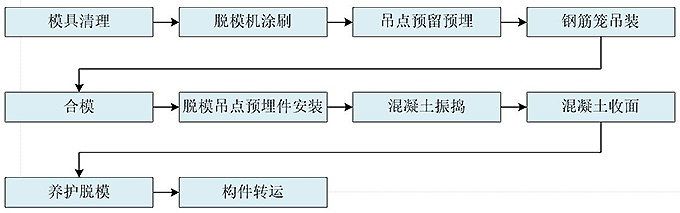 預(yù)制樓梯采用定制模具進(jìn)行生產(chǎn),生產(chǎn)流程如下: