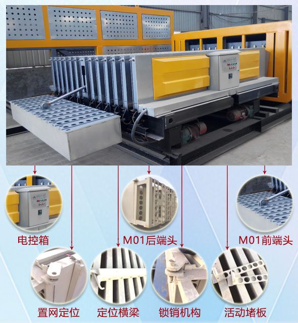 M01隔墻板生產線系我公司第一條成組立模生產線,自成組立模研制成功20多年來,其投資小,見效快,操作快捷方便,性能可靠等特點深受客戶信賴。市場占有率已達到80%。