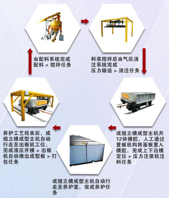 M08復合墻板生產線是瑪納公司研發的 “瑪納成組立模輕質墻板成型設備M系列產品”之一,應用的21項核心技術獲得國家實用新型MN,M成組立模系列墻板成型機屬機械自動化模腔成型,成度精密度精準度高,制作工藝穩定性比較好,具有廣泛的應用范圍,可依據各地資源利用不同原材料,生產制造出多種結構,多種功能,多種使用用途的新型墻板,并遠遠超過現行標準的要求,是符合我國墻改政策的新型墻體材料制造裝備。