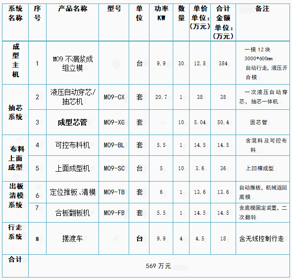 M09輕質墻板自動化生產線-年產50萬㎡-報價表