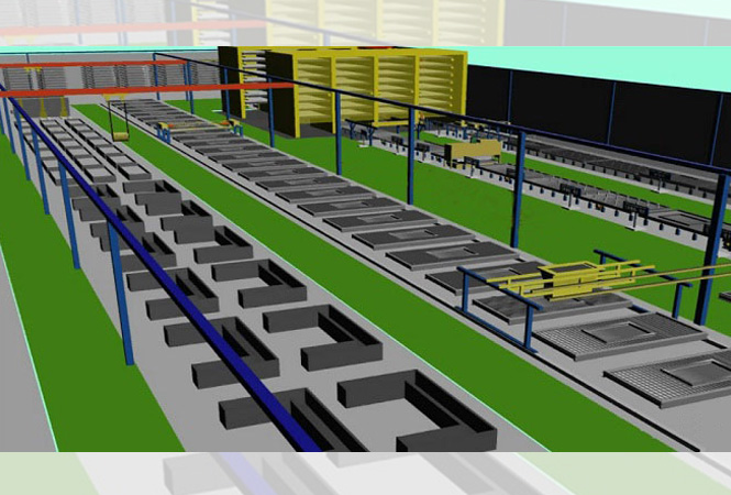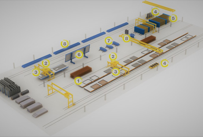 瑪納公司固定模體生產線,可專業生產疊合樓板,效率高,投資較移動流水線只有其40%左右,占地面積小。固定模體生產線長度約60-100米設計,模體寬度一般為2.4米(最大生產疊合樓板寬度,長度寬度可調);可設計2-4條固定模體,產能約為15-50平方米。